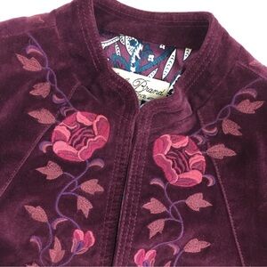 Lucky Brand Velvet Blazer Jacket Embroidered Boho Plum Purple Pink Floral XS