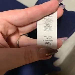 Windsor dress Off the shoulder with v-neck boning Navy blue Stretchy material Size small Worn once for a wedding