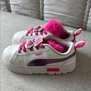 Puma White and Pink Sneakers with Fur