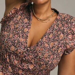 Anthropologie Peregrine Midi Autumn Floral Ruffle Sleeve Dress Size 2X