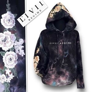CIVIL REGIME White Rose With Lighting Tie Dye Unisex Hoodie Pullover Size L
