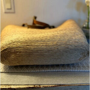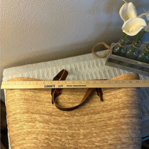 Mexico Givaway Straw Tote bag with pink interior lining. 2 side sleeves and a snap closure. Very roomy, perfect for travel shopping, a cruise, day at the park or beach. Some wear on the handle but still in great shape. Approximately 20” wide at the top, 14” at the bottom and 13 1/2” tall.