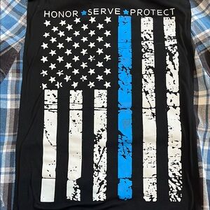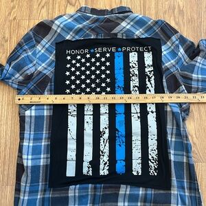 Honor Serve Protect Blue Flag Flannel Shirt Upcycled unisex Size XL X- Large