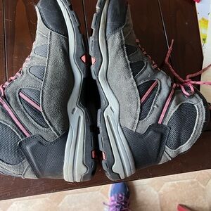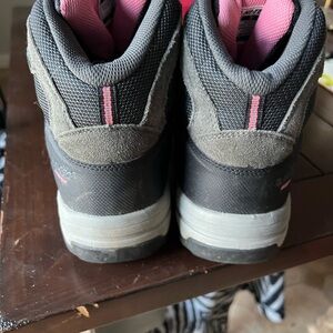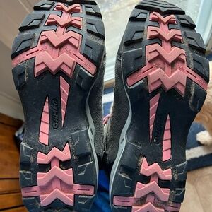 These high-tech Bandera shoes are the perfect shoes for someone who wants to start hiking they're in fabulous condition and they are a great deal pink with gray and dark, gray tread and waterproof
