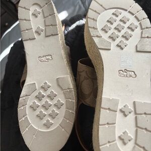Stylish Coach sandals. Features signature pattern. Comfortable and chic.