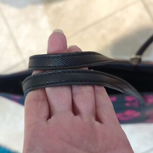 Black with pink , burgundy rose pattern large Tote