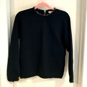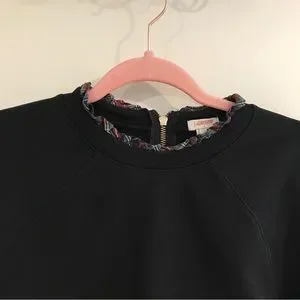 J.Crew Black Crewneck Sweatshirt with plaid frill lining and gold zipper…