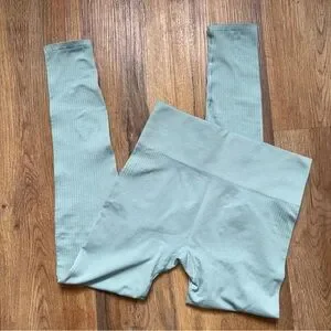 Hollister Gilly Hicks Go Boost Bottoms leggings in sea foam green. Pull-on, ribbing, stretch, seamless, high waist.