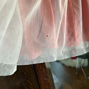 Dress is Matilda Jane, GUC. The dress itself is great but the mesh outer layer has some flaws in pics. You can remove the mesh. No size on dress but fits like 2-3T.