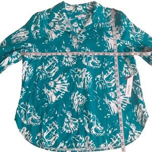 Chico’s No Iron Coastal Treasure 3/4 Sleeve Tropical Jade Shirt Size 2.5 / L. New with tags. Non smoking home.