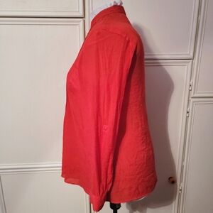 This lightweight pleated front top is in very good used condition. Light wear. No damage.