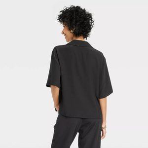 A New Day XL Cropped Black Short Sleeve Button-Down Camp Shirt