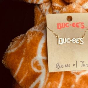 Stylish Buc-ee's necklace. Features sparkling details. Perfect for fans.