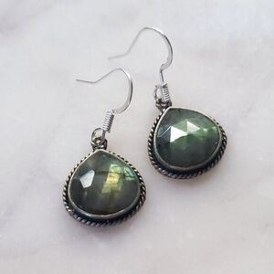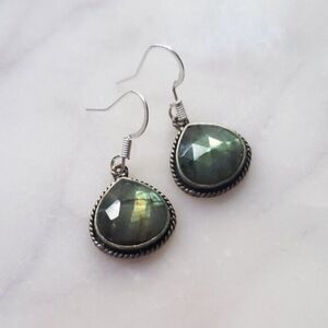 Labradorite Earrings - World Market Blue Green Silver Crystal Rose Cut Teardrops