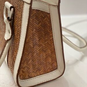 Michael KORS Rattan wicker handbag purse white leather trim straps.