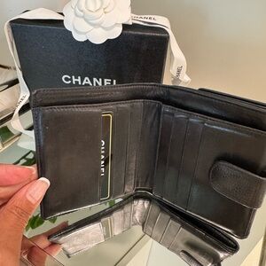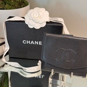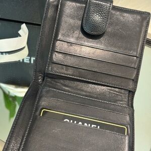 Beautiful Classic Chanel Wallet with CC Logo in great pre-loved condition. Timeless Black Pebble finish. Comes with box and authenticity card and will add a touch of delight every time you pull it out of your pocketbook. Any questions, just ask!