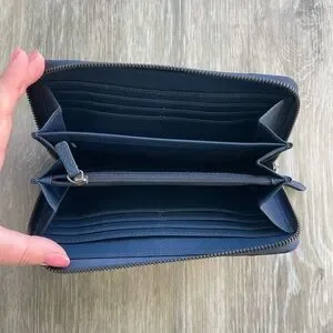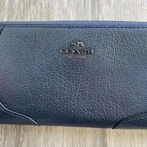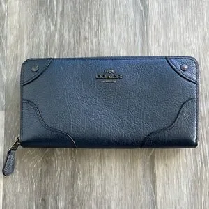 Coach Mickie Blue Metallic Leather Accordion Wallet