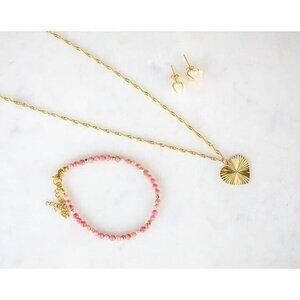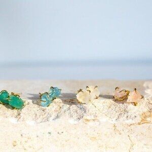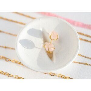 Pretty and Pink Rose Quartz Raw Gemstone Stud Earrings 18k Gold Setting - gold plated on 925 Sterling Silver