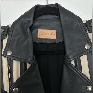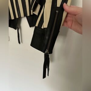 Striped leather jacket in good condition. Tag says M but runs a little small.