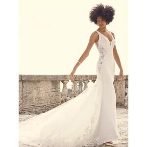 sottero and midgley alec lace mesh low back train wedding dress