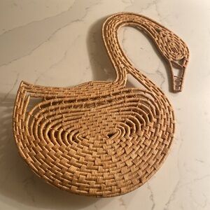 Beautiful woven swan design. Clean and smokefree. 2 trivets included. Measure 16.5 inches tall and 12 inches wide. Perfect for any decor.