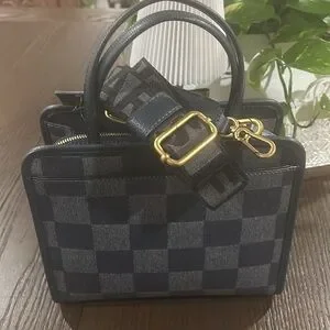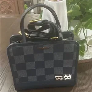 Karl LAGERFELD NWT Check (denim and black) Crossbody/Tote with removable Guitar Strap! Gorgeous BAG!