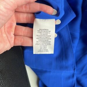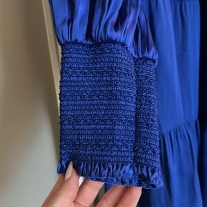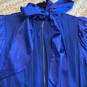 AMAZING! Worn 1 time for an event for a few hours! I love this dress so much. Royal blue. Size 8. Zipper in back with tie detail.