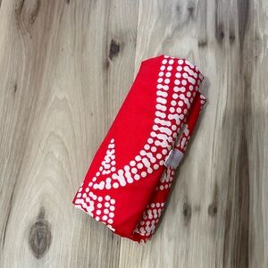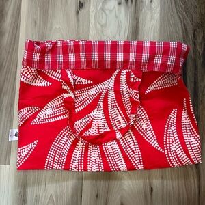 Foldable lined tote. Newly made. Folds to a small, handheld size. Great for storing in your car or purse. Always have a cute, durable bag wherever you go. Size 18x16. Fun print on outside and palaka print on inside, reversible.