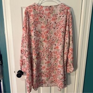 Ellos Women's Plus Size 22 Pink Floral Keyhole Neckline Tunic