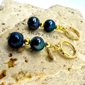 Black Baroque Freshwater Pearl Earrings