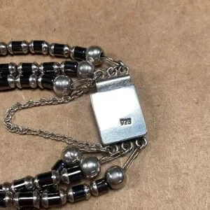 Womens 3 Stranded Bracelet Hematite Beads Sterling Silver