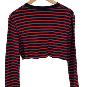 Old Navy Soft Wash Womens Size Small Red & Blue Striped Cropped Thermal Shirt