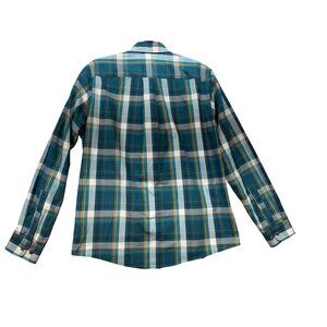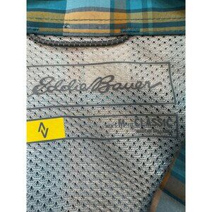 Eddie Bauer Mens Classic Fit Button-Down Shirt M Teal Blue Plaid