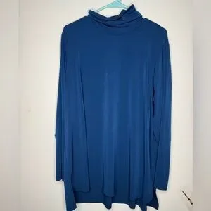 Susan Graver 1X Modern Essentials Midnight Ink Liquid Knit Turtleneck Top Blouse