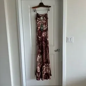 Farm Rio Burgundy Leopard Paisley Maxi Slip Dress
