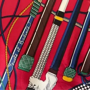 Hermès Fouets Et Badines Silk Scarf Foulard. Preloved. Hermès silk Scarf With Motif. Hand Rolled Edges. No Flaws. 💯% Silk. Artist Virginia Jamin. Measures 35.5 By 36 Inches. Color Multiple. In Excellent Condition.