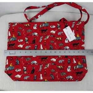 Vera Bradley Tote Holiday Cats Factory Style Essential Red Signature Cotton New