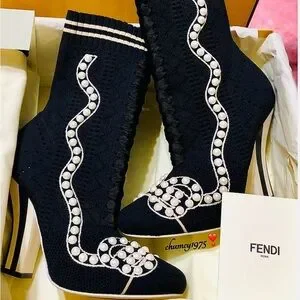 FENDI BOOTS TRONCHETTO FIL.3 WITH PEARLS 7.5 SIZE