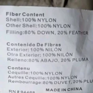 Nylon outer shell and lining material.