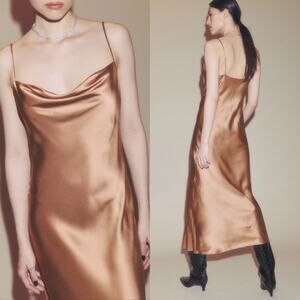 NWT Reformation Salamanca 100% Silk Maxi Dress Cowl Neck Sleeveless 6 Croissant