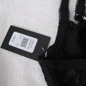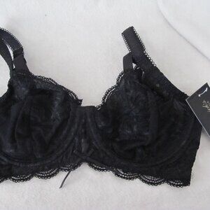 New with tags - Frederick's of Hollywood Charlotte Lace Cup detail accent bra - Black color - Size 32 D. Back closure with adjustable straps.