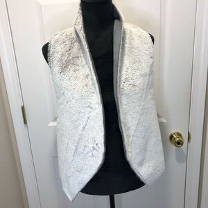 Tart faux fur gray vest. Faux fur outside and lined in faux suede, very soft and stylish. Open front. Small stain and inside lining has a few scratches that are not seen when worn. Length 23in, pit to pit 21in, size small❤️❤️