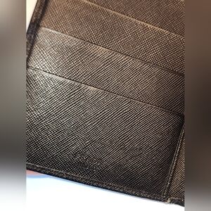 This Prada vintage wallet, crafted from black leather, showcases the iconic triangular logo. While exhibiting minor material wear and light staining (refer to accompanying photographs), it remains in excellent condition.