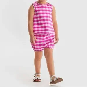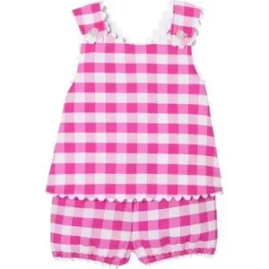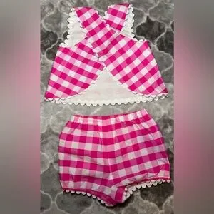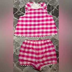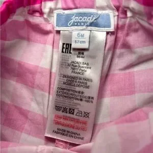 JACADI PARIS Baby Girl Gingham Shorts Set- Pink & White/ Size 6 Months