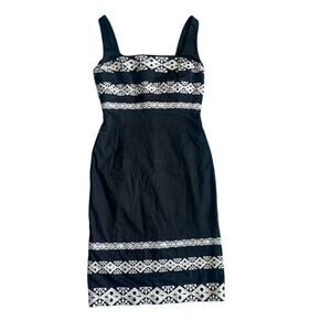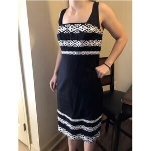 White House Black Market Black White Cotton Midi Dress Size 0 NWT