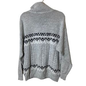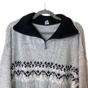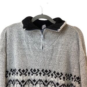 Vintage Sweater Mens M Fair Isle 1/4 Zip Gray Wool Blend Pullover Grandpa