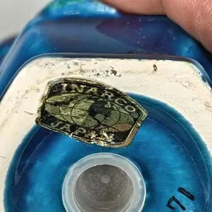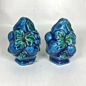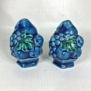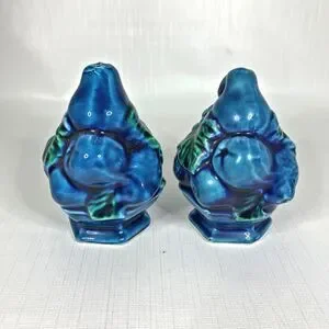 Inarco Indigo Salt Pepper Shakers Set E2371 Kitsch Blue Mood Retro 70s Vintage. Crack/repair on top of salt shaker, measures approx. 4" tall.