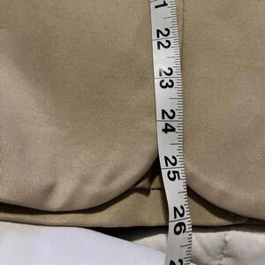 Girlfriend Chino Blazer. Khaki beige blazer. One button closure. Collared. Long sleeve with 3 button detail at the wrist. Interior is lined with beige polyester material for a silk luxurious feel. The back has a slit at the bottom that is still sewn together. Lightweight. Dry clean. Cotton and elastine material for a soft, stretch and comfortable wear. Great for all occasions and seasons. Wear casual with jeans, shorts or dress. Wear over a button up, slacks and heels. Wear with boots and jeggings with a sweater.