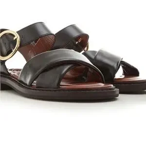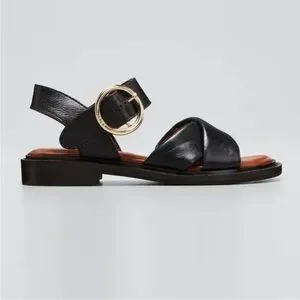 See by Chloe sandals LYNA flat black leather buckle 35.5 new