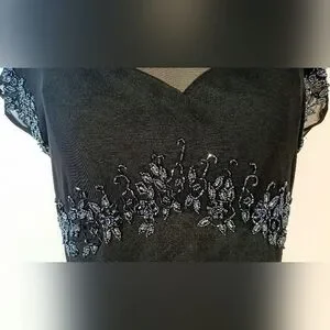Vintage :: Ste'nay Sequin Regency Beaded Black Maxi Formal Event Dress Size 12